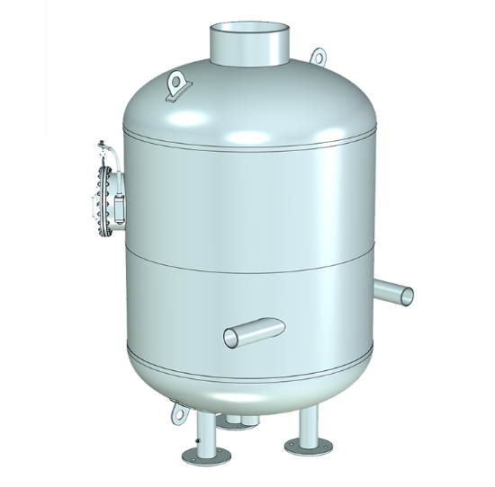 Сепаратор (расширитель) непрерывной продувки представляет собой вертикальный цилиндрический сосуд эллиптическими днищами, подводящим патрубком и паро- и водоотводящими патрубками и поплавковым регулятором, который автоматически поддерживает уровень воды. Закрутка потока осуществляется за счет организованного подвода пароводяной смеси на внутреннюю стенку сепаратора или за счет установки специальных внутренних устройств.