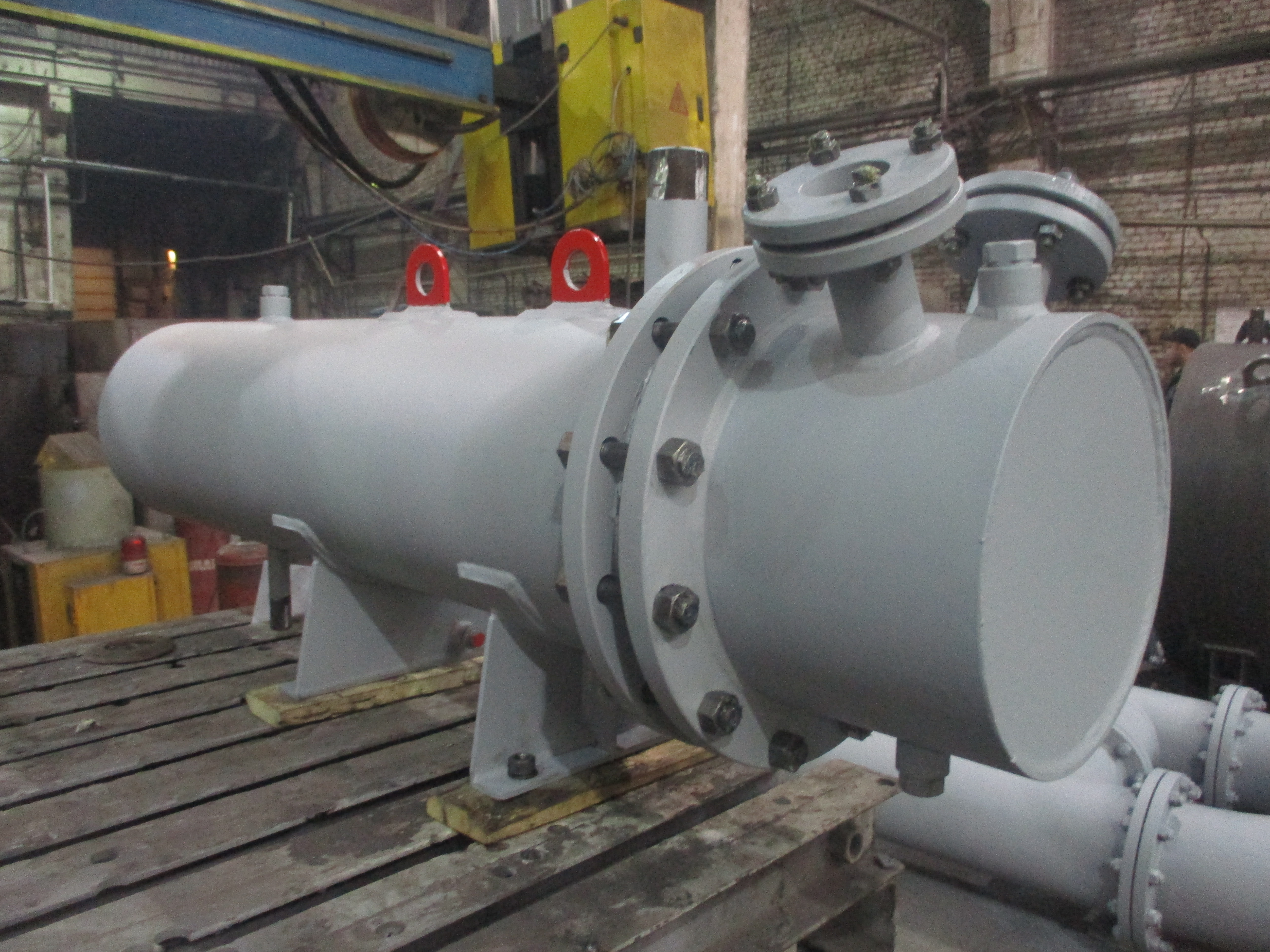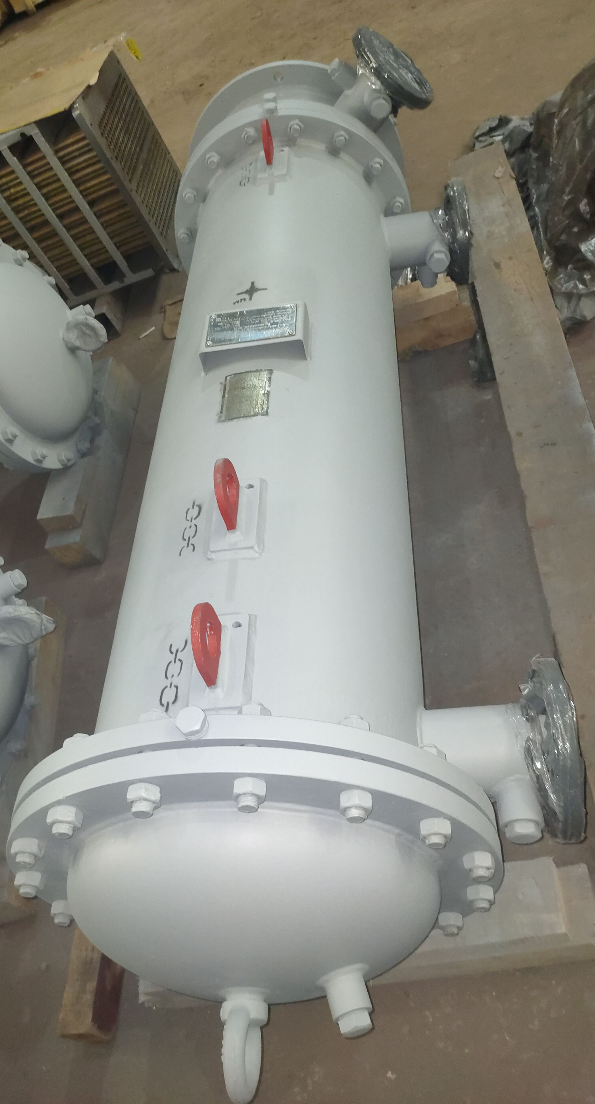 Охладитель конденсата (воды) по конструктиву представляет собой кожухотрубчатый теплообменник горизонтального или вертикального типа, состоящий из корпуса, трубной системы, съемных камер. Трубная система состоит из трубных досок с прямыми гладкими трубками из латуни или черной стали. В охладителях ОВ-40М и ОВ-150-3А трубные пучки состоят из U-образных труб.
